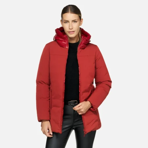 Giacca donna reversibile dal gusto contemporaneo, ideale anche per i mesi più freddi. Proposta in un’originale versione rosso scuro, presenta lato esterno liscio in tessuto taffetà, lato interno e cappuccio protettivo in nylon lucido laquè. Calda e traspirante, Spherica™ è un capo funzionale perfetto per la città, che offre massimo comfort anche col maltempo.