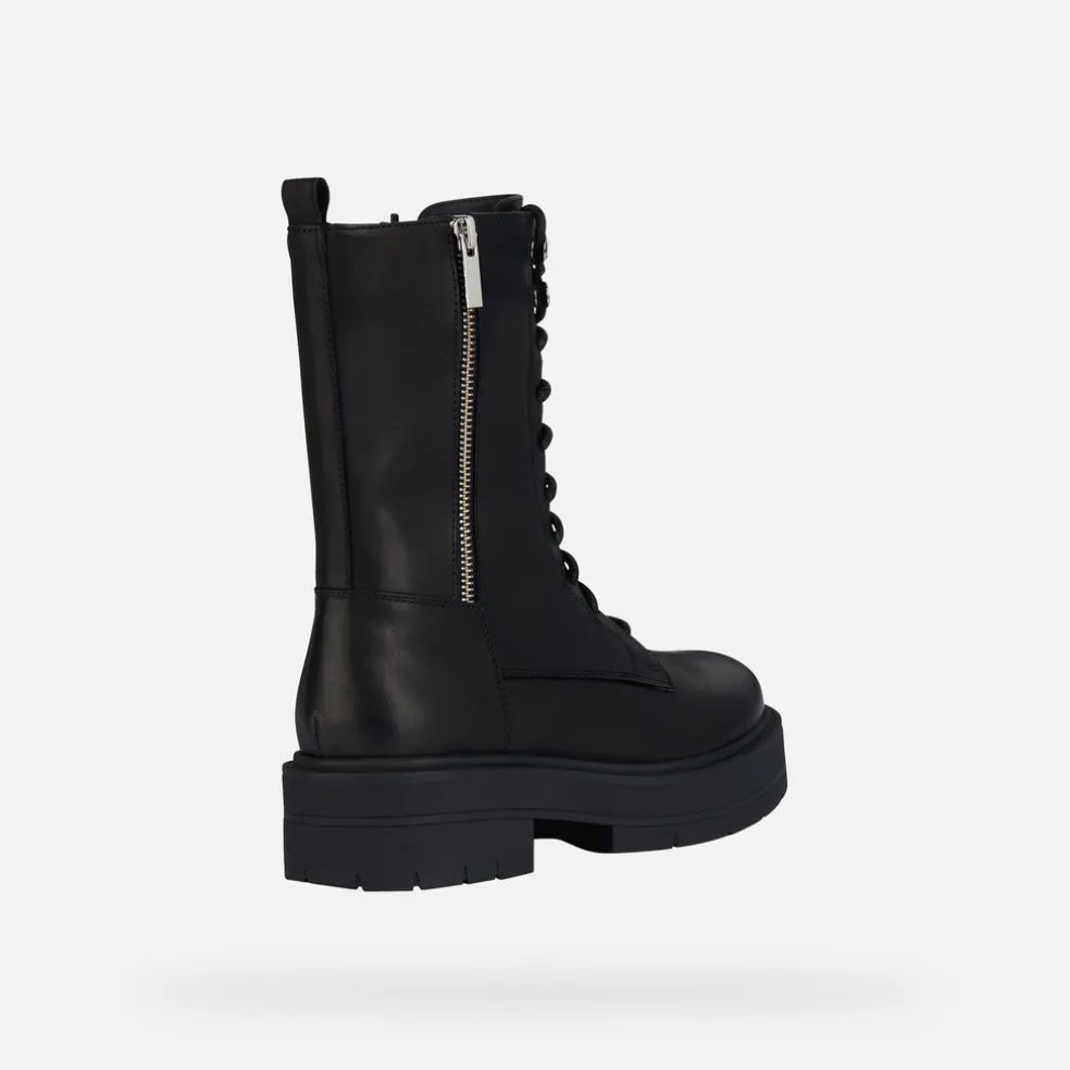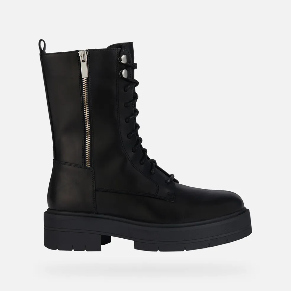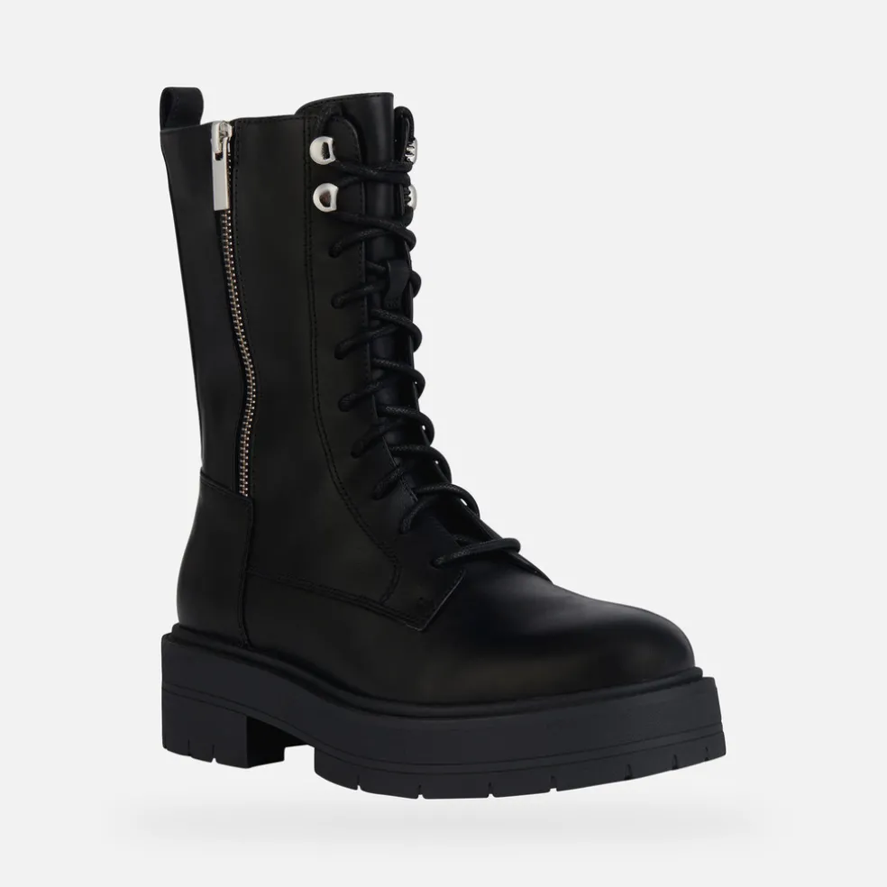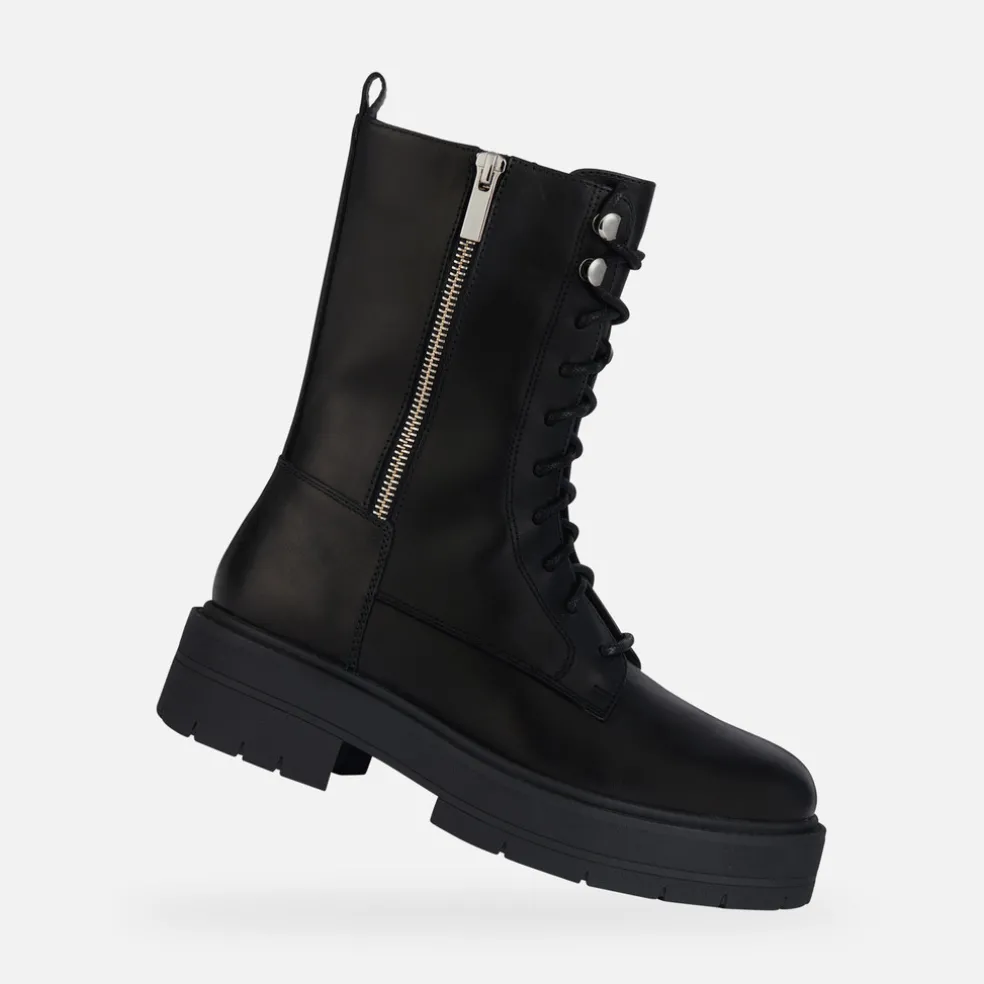 Stivaletto allacciato donna con pratica zip laterale e suola carrarmato, dallo stile grintoso. Qui proposto in una versatile variante nera, ha una tomaia in pelle liscia che valorizza il suo design iconico, ispirato ai classici combat boot. Traspirante ed ultra ammortizzato, Spherica™ EC7 è perfetto per le giornate cittadine poiché garantisce una camminata leggera e confortevole.