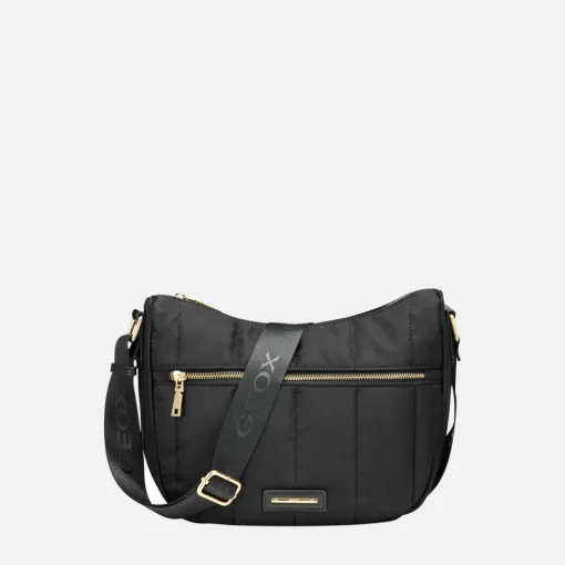 Borsa donna dall’animo sportivo, dotata di tracolla regolabile con stampa logo. Comoda e pratica, è realizzata in nylon super leggero e materiale effetto pelle ed è qui presentata in nero, immancabile nel guardaroba casual. Adatta agli outfit cittadini, Traveggy S è un accessorio adatto anche per il tempo libero o per viaggiare con tranquillità.Indosso a spalla o a tracolla.Chiusura con zip in metallo.Tasca frontale con cerniera.Due tasche interne.Tracolla regolabile in tessuto.Accessori metallici con finitura oro.Dimensioni: L 28 cm x W 11 cm x H 24 cm.