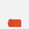 Pratico portafoglio donna dal design moderno e compatto e dallo spessore ridotto. Realizzato in resistente pelle bottalata per un look impeccabile, è qui presentato in una vivace versione arancione. Indispensabile compagno quotidiano, da portare con sé anche in viaggio, è dotato di chiusura con zip laterale e di comode fessure portatessere.Chiusura con zip.Loop removibile.Cinque portatessere verticali.Un portacarte anteriore e uno posteriore.Accessori metallici con finitura oro.Dimensioni: L 14,5 cm x W 1,5 cm x H 8,5 cm.