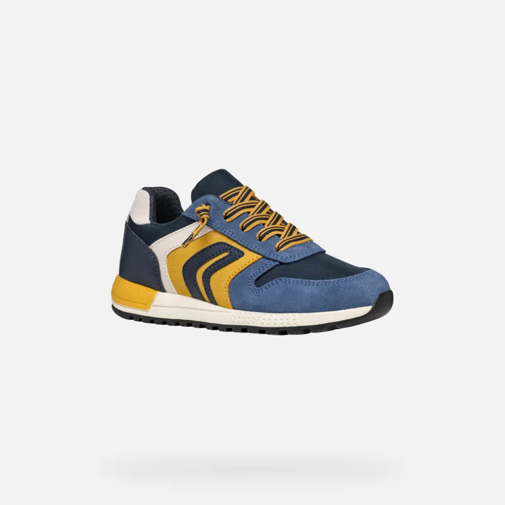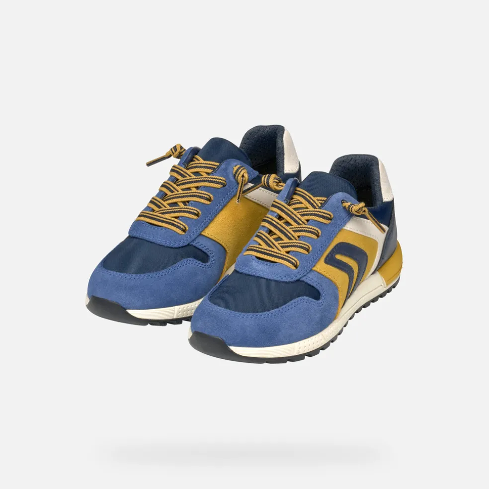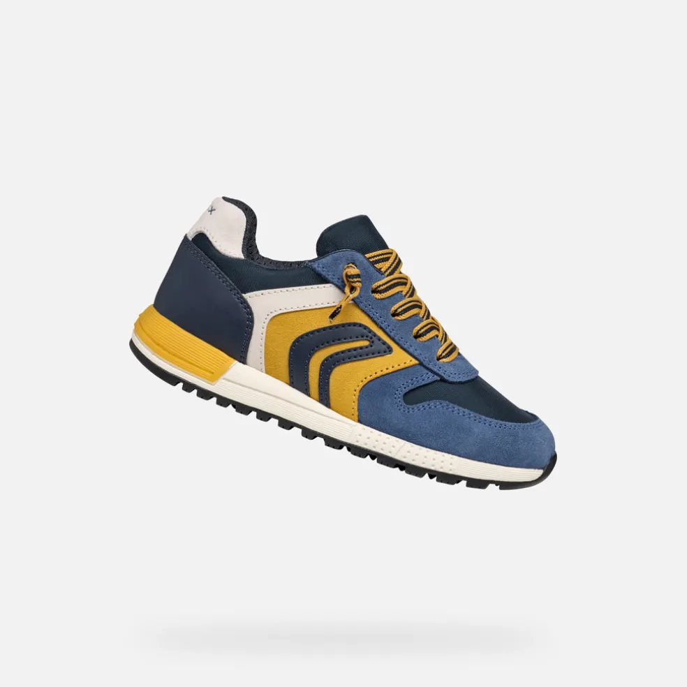 Sneaker low-cut bambino d’ispirazione running dal gusto retrò, comoda e traspirante. Qui proposta in color denim con dettagli gialli, Alben è un modello perfetto per completare gli abbinamenti casual e sportivi. Realizzata in scamosciato e nylon, è garanzia di comfort grazie ai lacci elastici e alla suola ammortizzata.
