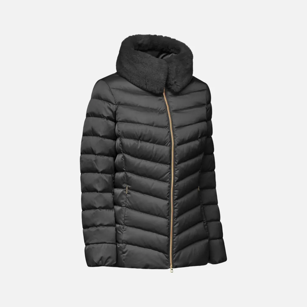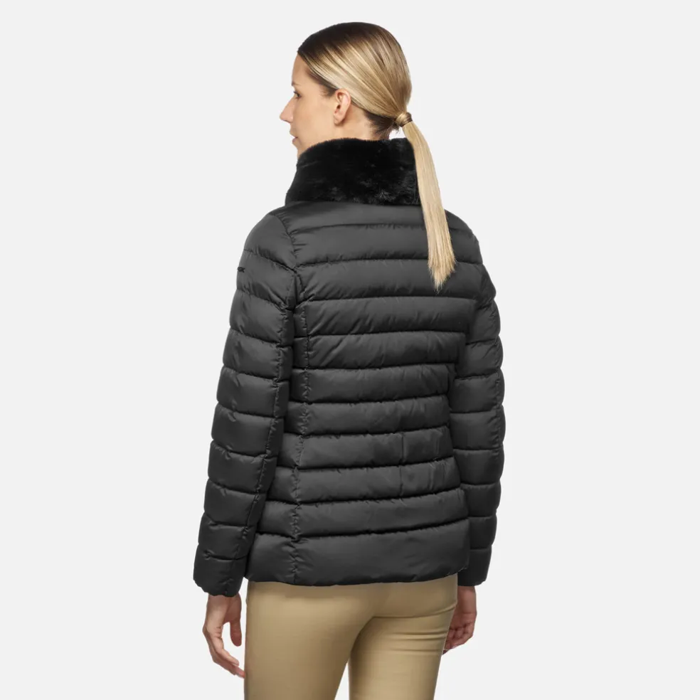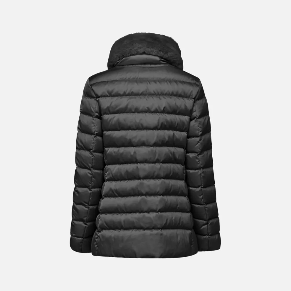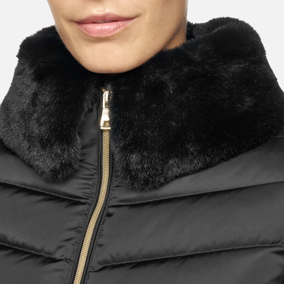 Piumino corto donna dallo stile casual-chic, che dona un tocco femminile ai look quotidiani. Qui declinato in una classica variante nera, Bettanie vanta un taglio svasato che avvolge la silhouette. Proposto in tessuto satin con morbida imbottitura in piuma rigenerata XDOWN, è arricchito da un dettaglio in faux-fur sul collo.