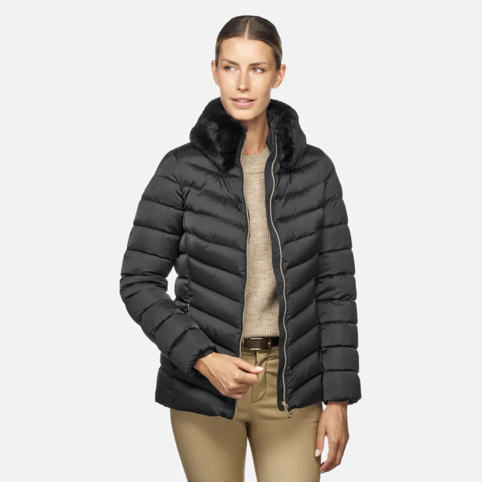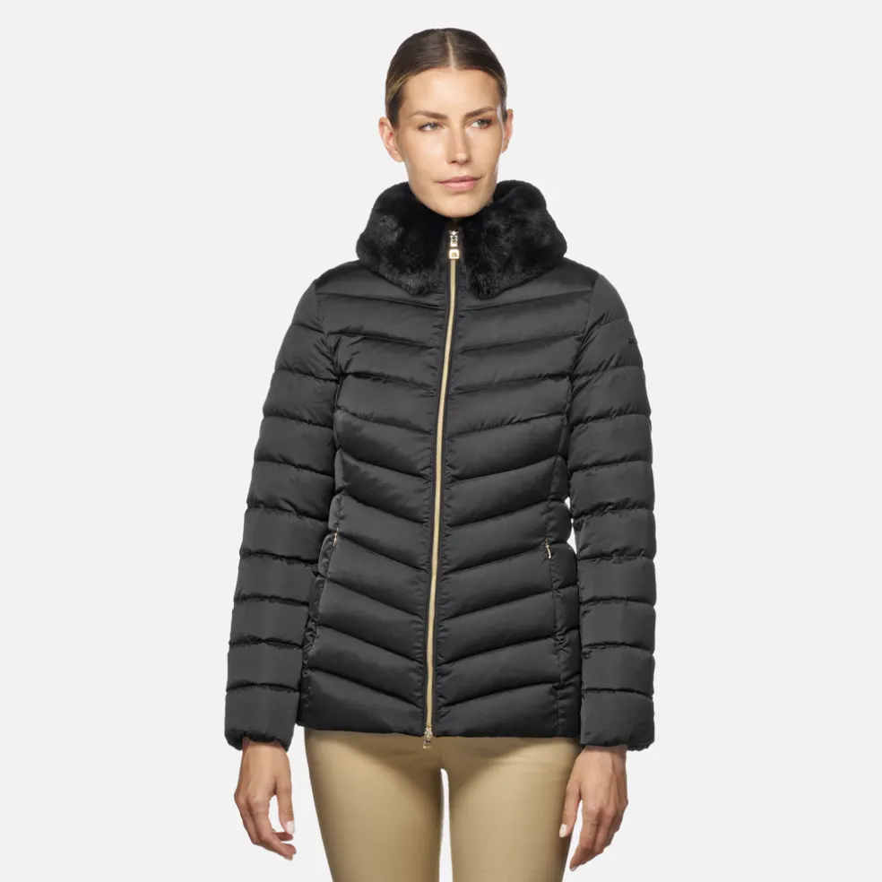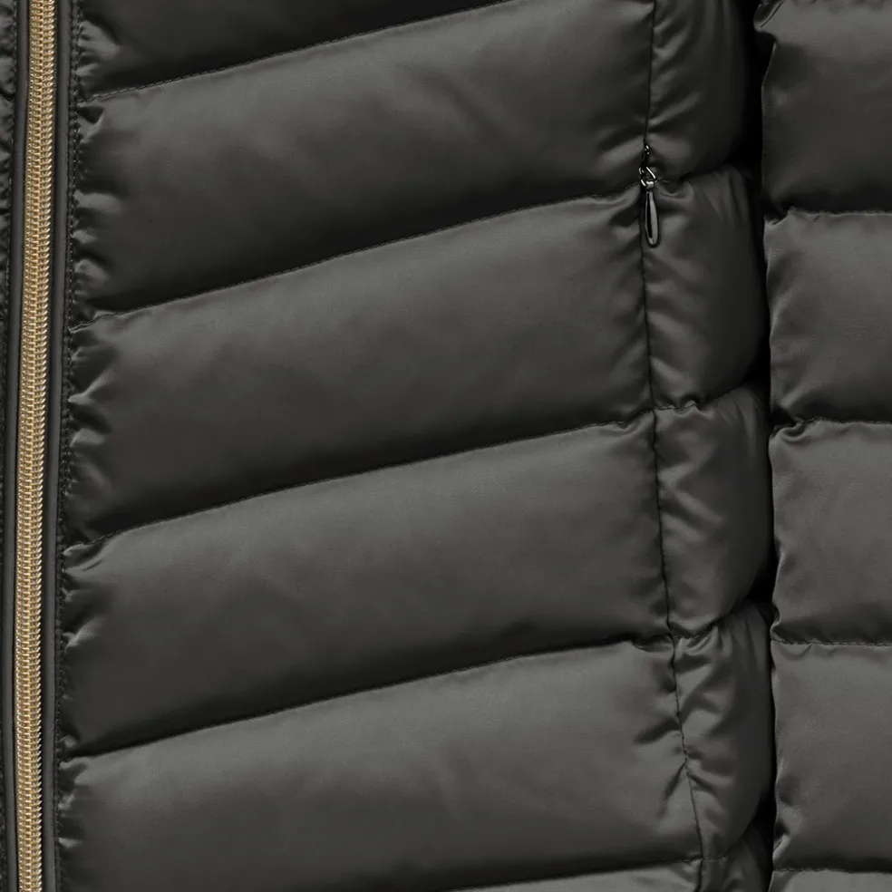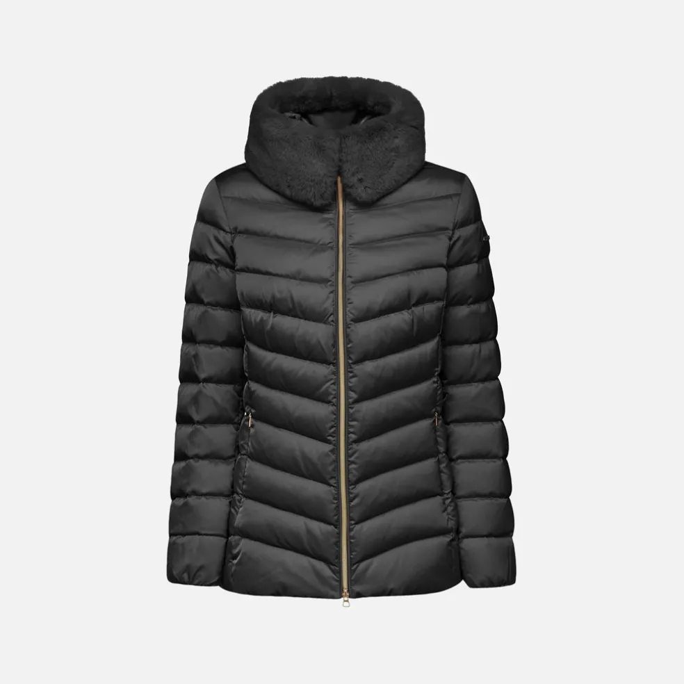 Piumino corto donna dallo stile casual-chic, che dona un tocco femminile ai look quotidiani. Qui declinato in una classica variante nera, Bettanie vanta un taglio svasato che avvolge la silhouette. Proposto in tessuto satin con morbida imbottitura in piuma rigenerata XDOWN, è arricchito da un dettaglio in faux-fur sul collo.