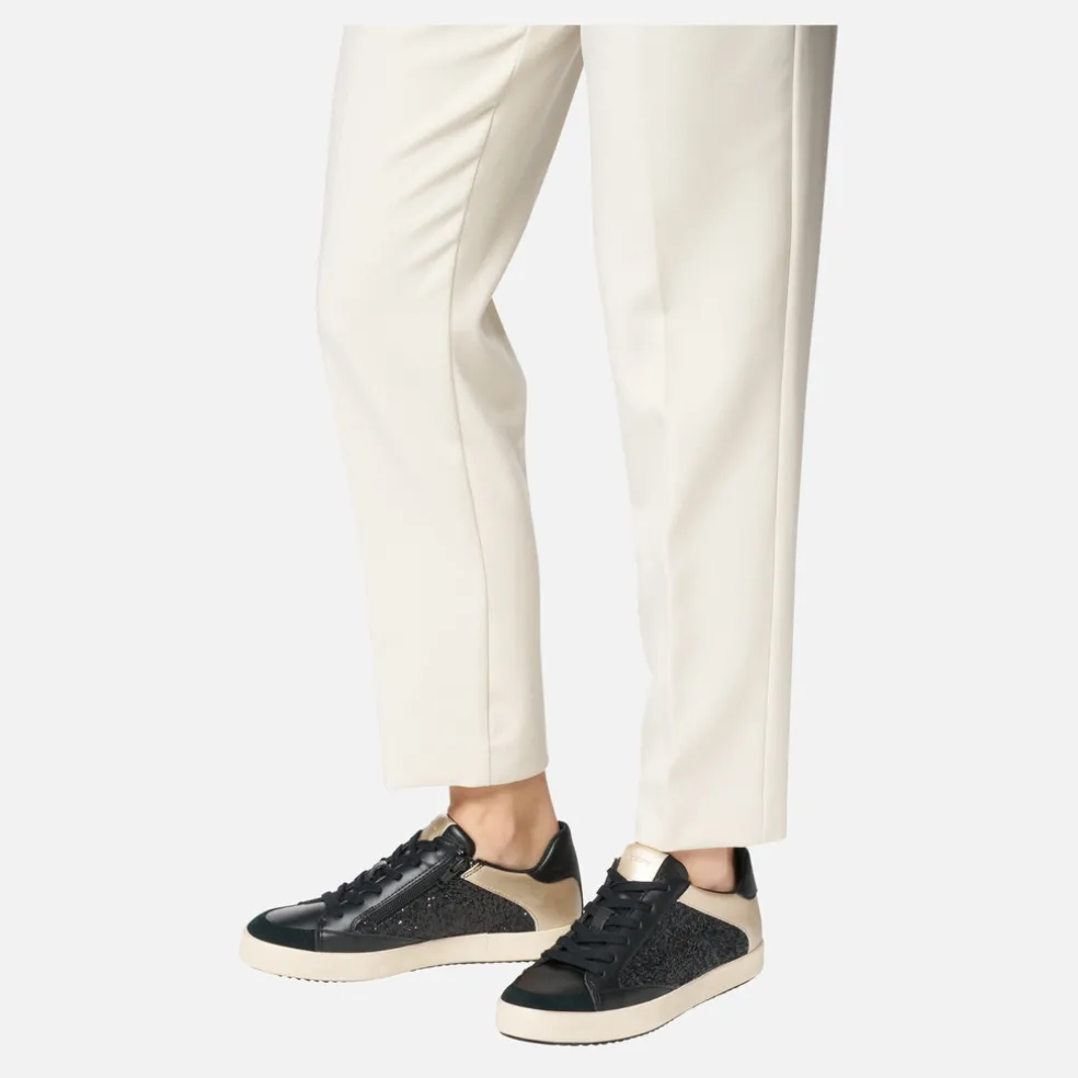Leggera e traspirante sneaker low-cut donna dall’allure active-chic. La sua tomaia realizzata in tessuto glitterato con dettagli in scamosciato, è qui presentata in una decisa variante nera. Blomiee ha uno stile contemporaneo ed è l’ideale per personalizzare gli abbinamenti casual di tutti i giorni con un pizzico di glamour.