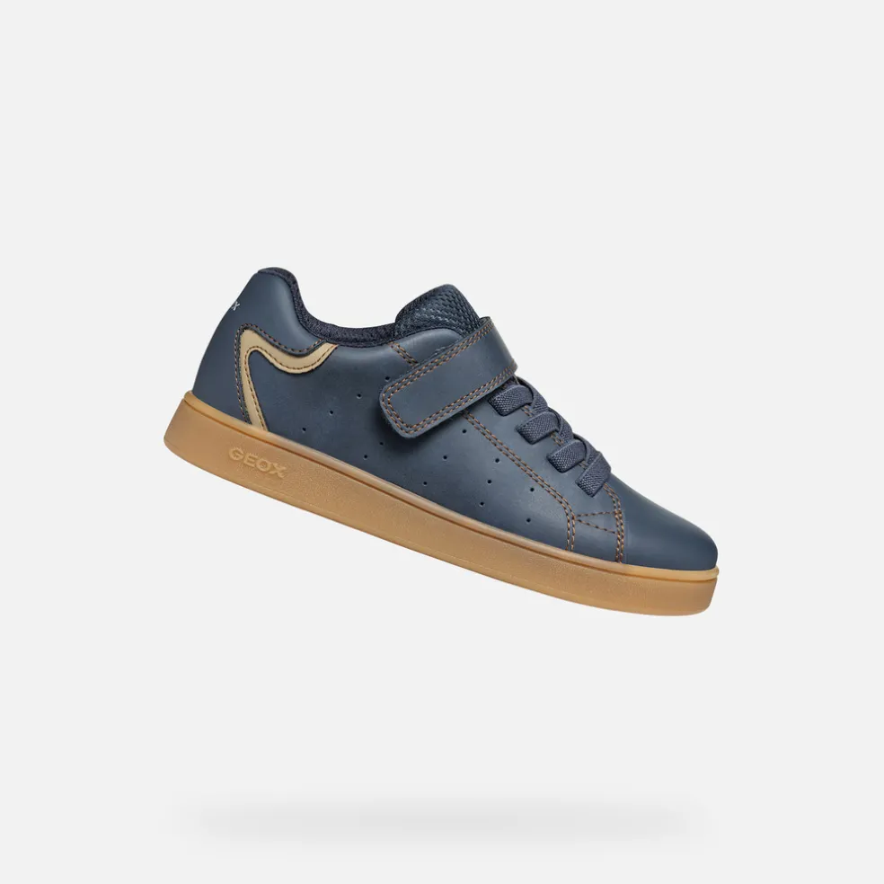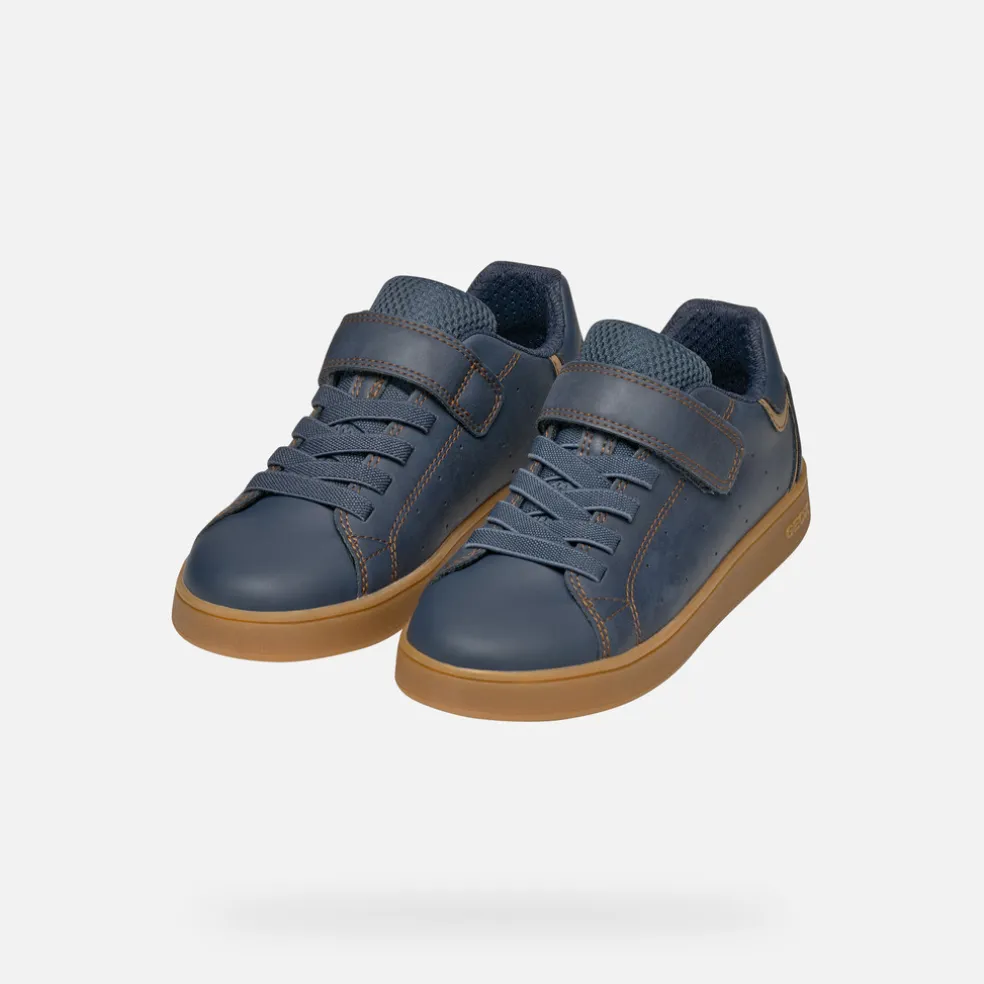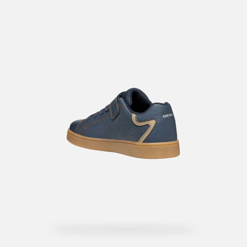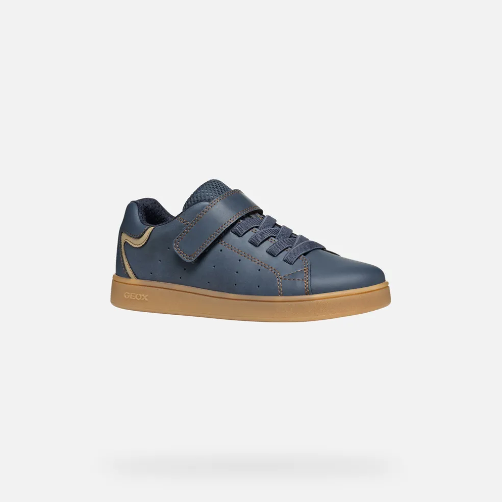 Sneaker low-cut bambino d’ispirazione tennis, dal look casual e facile da abbinare. Qui proposta in una versatile combinazione di blu navy e beige, Eclyper valorizza ogni suo outfit quotidiano. Realizzata in materiale effetto pelle cerata e mesh, è dotata di chiusura con lacci elastici e strap, per una calzata pratica e confortevole.