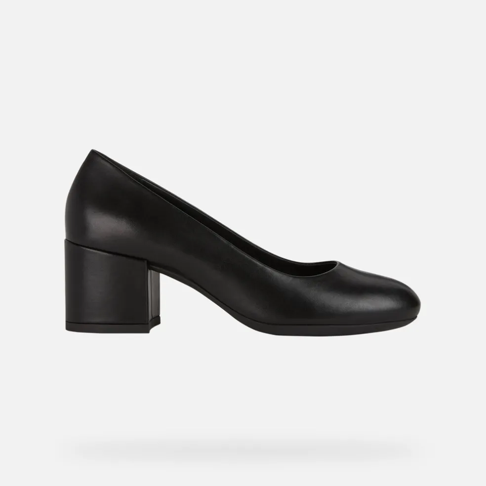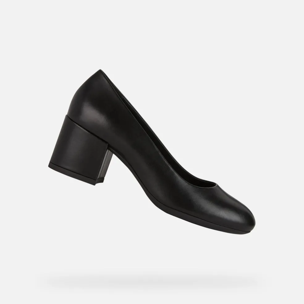 Décolleté donna, dal design intramontabile, traspirante e leggera.Immancabile in ogni guardaroba femminile, Eleana è una scarpa in morbida nappa nera, essenziale e versatile, da indossare sia con un abbigliamento casual che con un look più formale. Dotata di un confortevole tacco grosso, è perfetta con gli outfit di tutti igiorni.