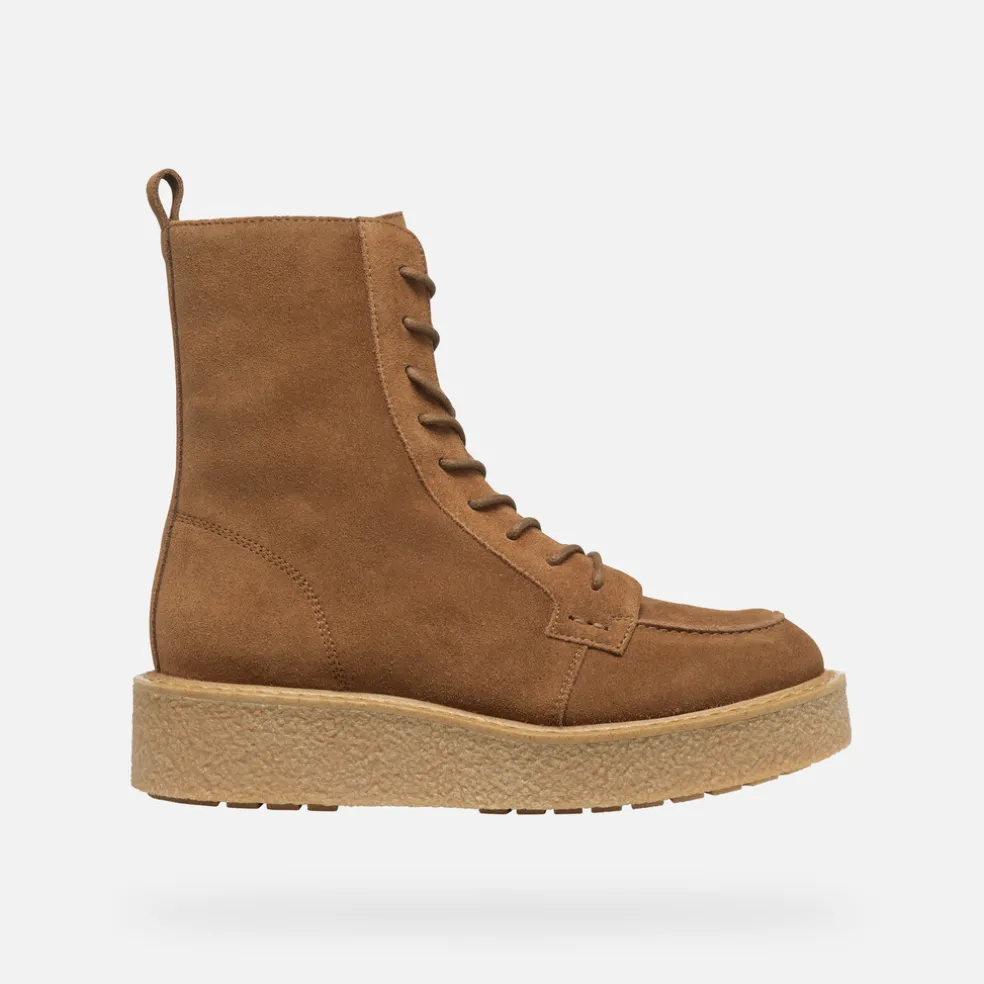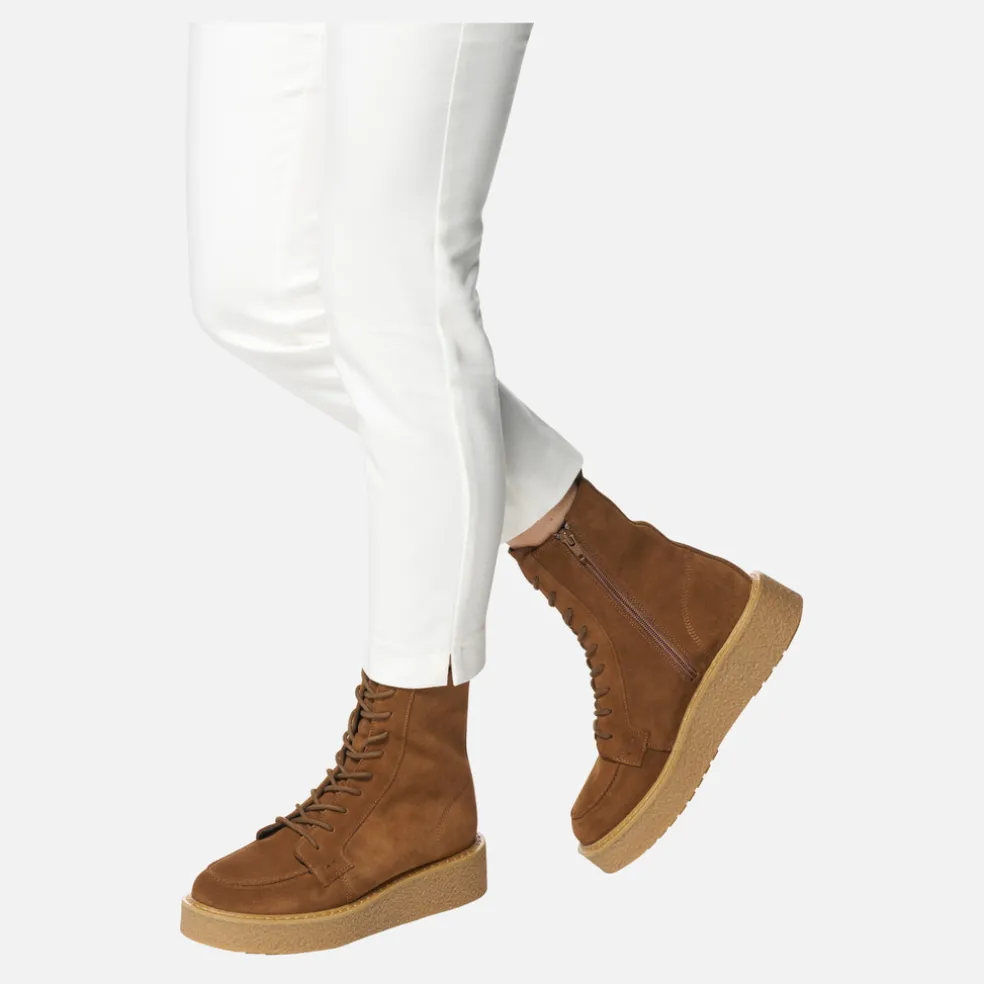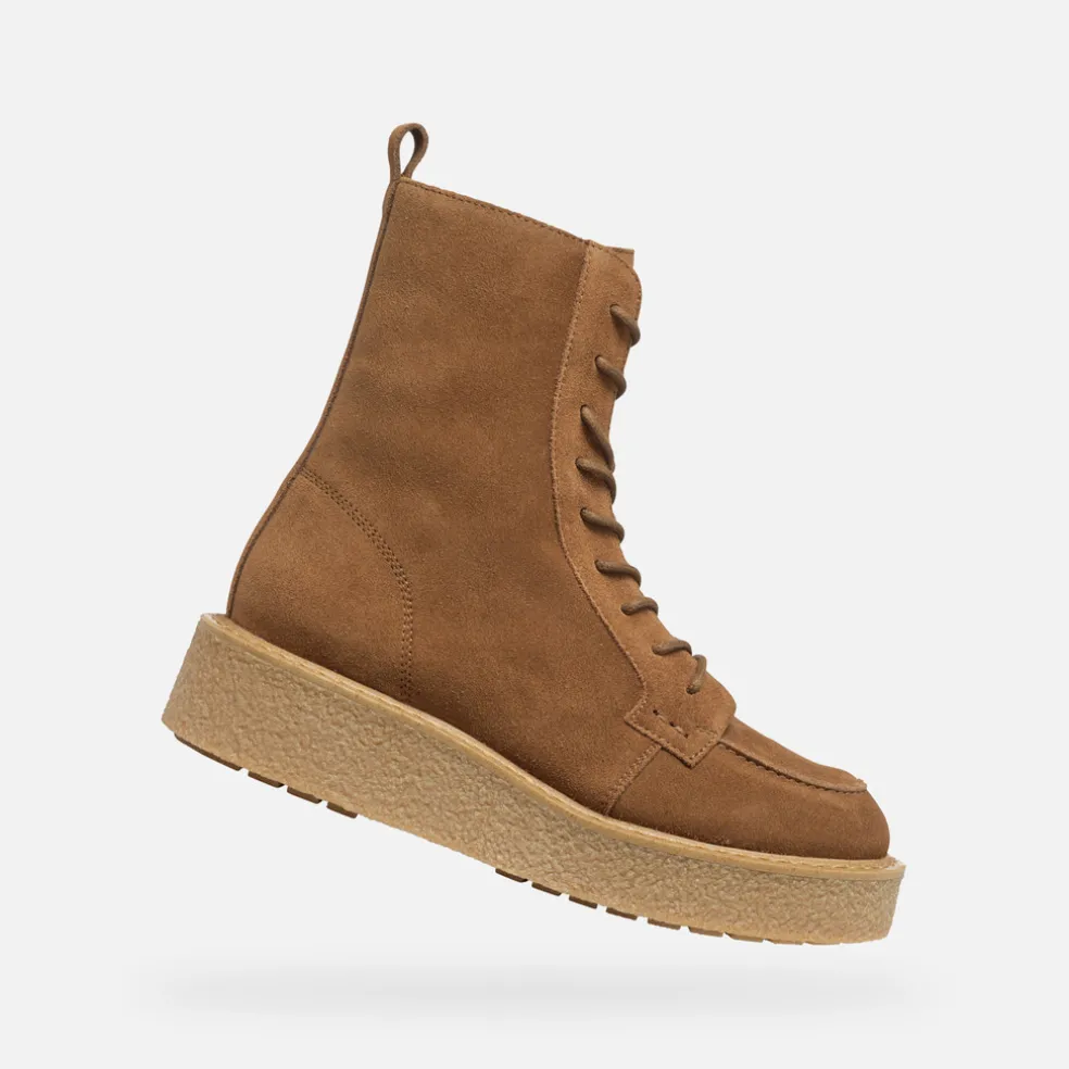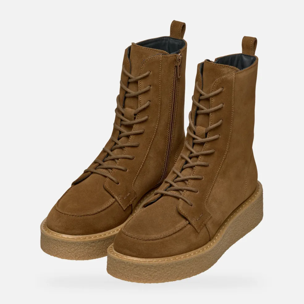 Stivaletto stringato donna con suola flatform, dallo stile casual e quotidiano. Confortevole e traspirante, ha una tomaia in scamosciato ed è facile da abbinare in questa calda tonalità tabacco. Comodo da mattina a sera, Elidea è l’ideale sia per camminare in città che per le gite fuori porta.