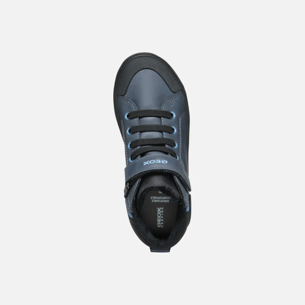 Sneaker mid-cut bambino comoda e leggera dal design pulito e alla moda. Qui declinata in blu navy e blu chiaro, Gisli è perfetta per accompagnare i suoi casual look, a scuola e nel weekend. Realizzata in materiale effetto pelle cerata e nylon, vanta una comoda chiusura con lacci e strap, per una calzata pratica e veloce.