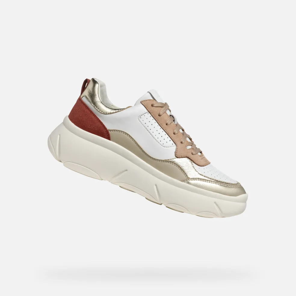 Sneaker donna dallo stile contemporaneo e dal design ergonomico. Qui proposta in una luminosa versione che accosta bianco e oro chiaro, presenta una tomaia in morbida nappa e pelle metallizzata in perfetto stile casual-chic. Con la sua suola chunky trendy e ultra traspirante, Nebula™ 2.0 X ha un look sportivo ma al contempo femminile.