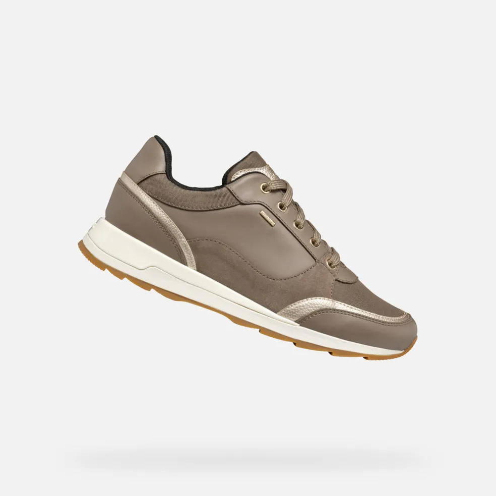 Sneaker donna impermeabile ispirata al mondo running, garanzia di comfort e traspirabilità. Qui proposta in una classica tonalità taupe, ha una tomaia in pelle liscia e tessuto dal design sobrio, curata in ogni dettaglio. New Aneko ABX è una scarpa perfetta per aggiungere una nota sportiva agli outfit casual, adatta anche in caso di maltempo.