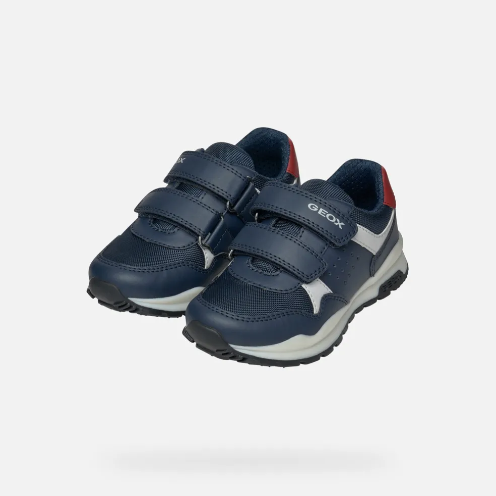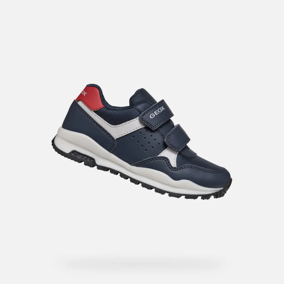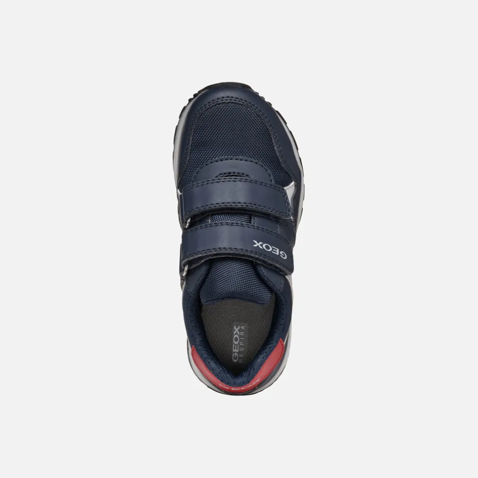Sneaker low-cut bambino di ispirazione retrò, ispirata allo stile running. Qui declinata in una combinazione di blu navy e rosso, Pavel sfoggia un look sportivo perfetto per gli abbinamenti casual quotidiani. Realizzata in materiale effetto pelle e nylon, è leggera e traspirante, la compagna perfetta per la scuola e il tempo libero.