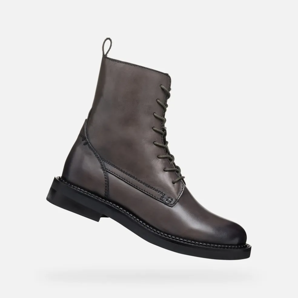 Stivaletto stringato donna comodo e traspirante, dal fascino urban contemporaneo. Proposto in pelle liscia, è qui presentato in una trasversale tonalità taupe, immancabile nel guardaroba di stagione. Serilda si presta ad infinite combinazioni di look ed è perfetto per affrontare con grinta le giornate frenetiche, senza rinunciare al benessere.