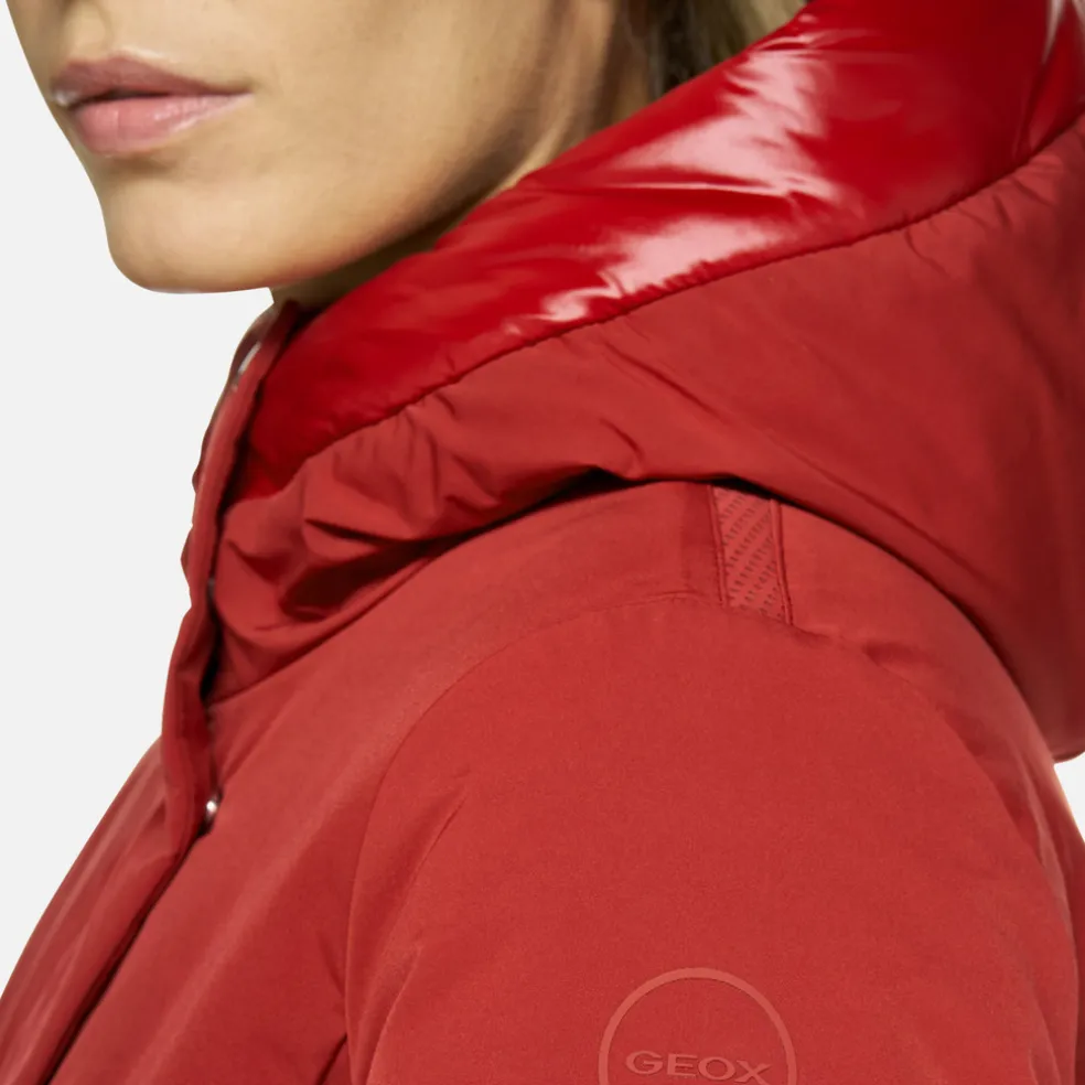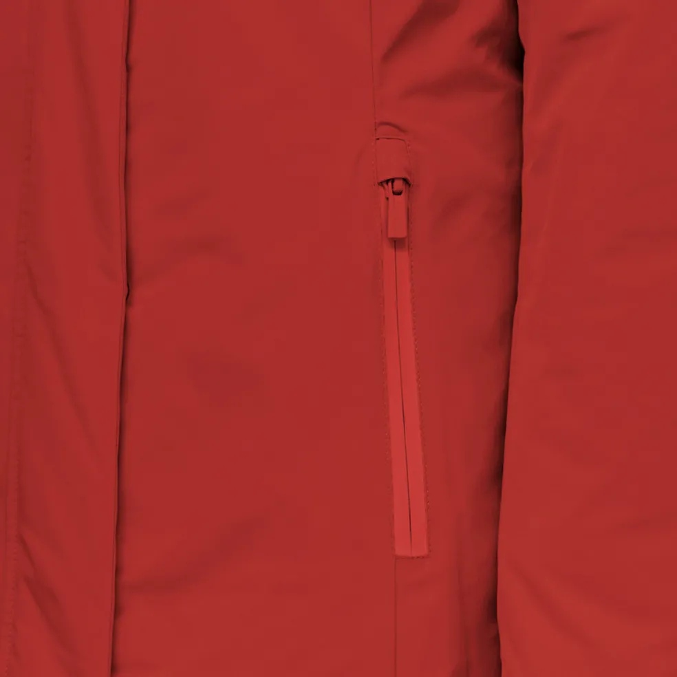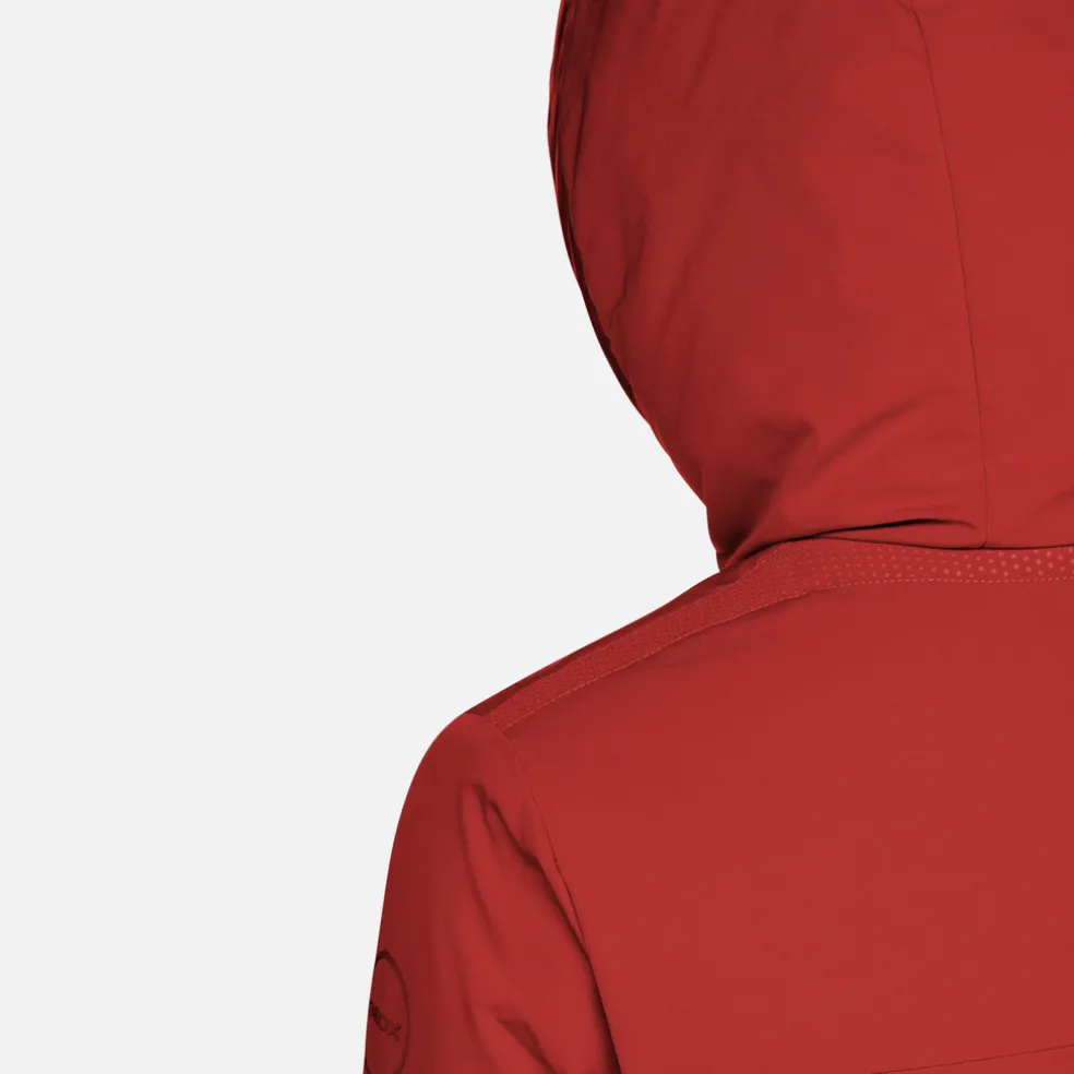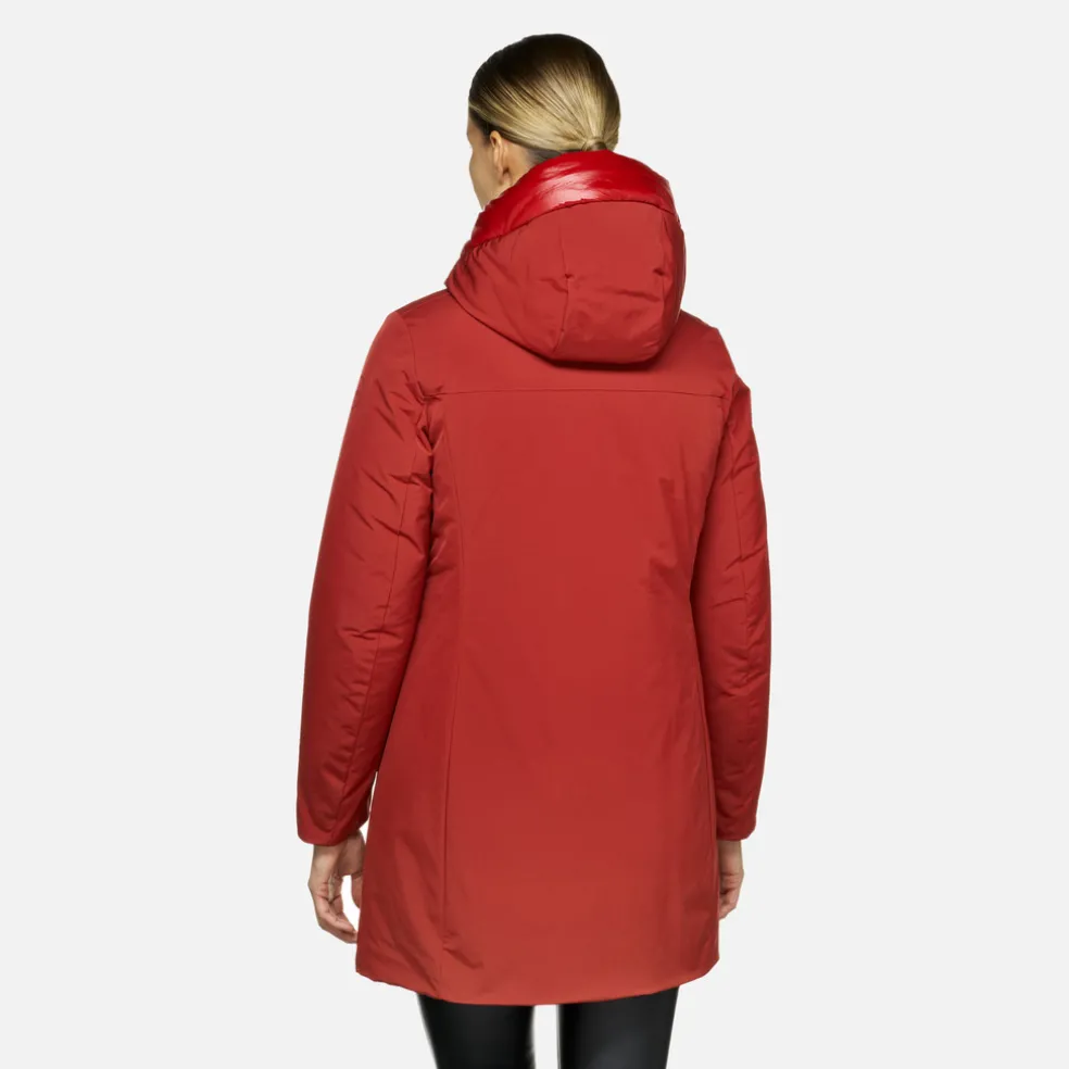 Giacca lunga donna molto confortevole e traspirante, dal look casual e moderno. Proposta in un’affascinante versione rosso scuro, Spherica™ è un capospalla ideale per la città dotato di pratico cappuccio protettivo. Perfetta anche col maltempo, è realizzata in tessuto taffetà repellente all’acqua e antivento, con dettagli in nylon lucido.
