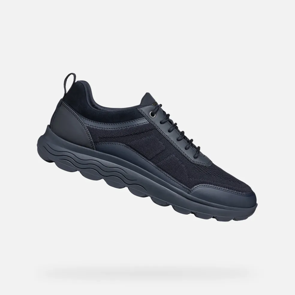 Sneaker low-cut uomo dal design iconico e dal look contemporaneo, sinonimo di massimo comfort. Ha una tomaia blu navy dal look active, realizzata in tessuto a maglia derivato da bottiglie in PET riciclate dopo il consumo abbinato a dettagli in scamosciato. Ideale per completare gli outfit casual cittadini, Spherica™ regala una camminata morbida e leggera, grazie agli alti livelli di ammortizzazione e traspirabilità.